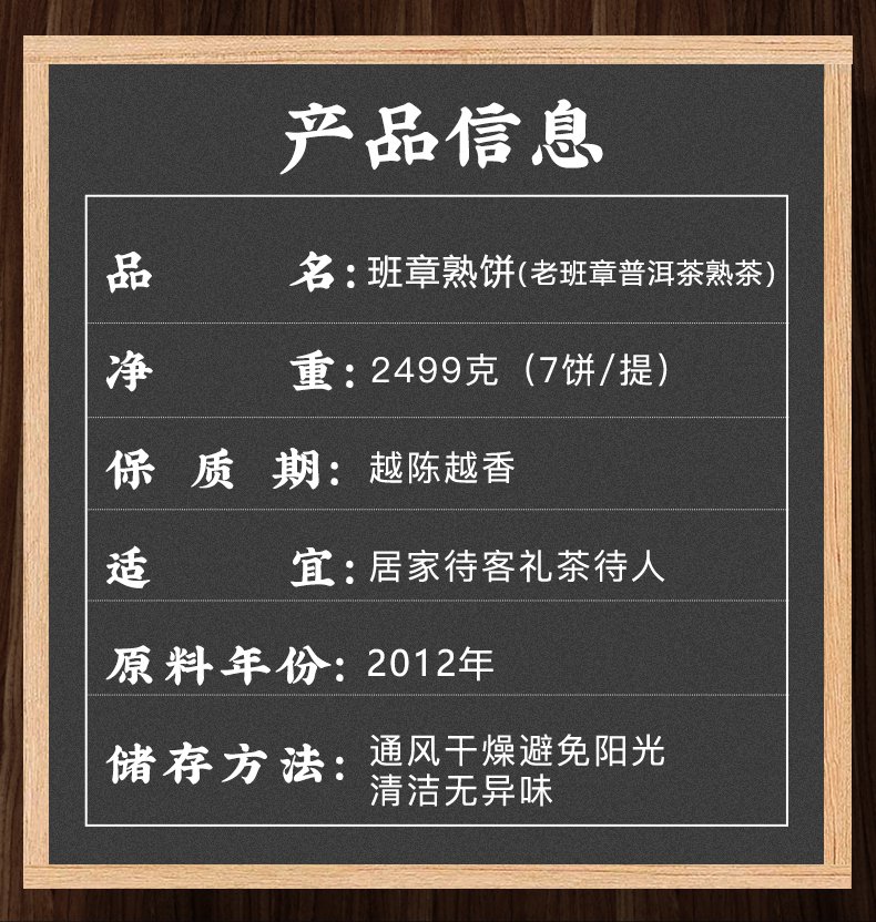 7병 2499g 2012 고수 노반장 숙 보이차 숙차 운남 칠자병